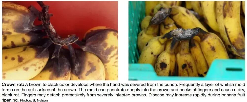 一旦贮藏温度低于 11℃ 就会发生冷害,导致果皮出现灰褐色斑块、果肉褐变,甚至让整个香蕉皮在短时间内变得乌黑一片。[3、4]如果冻伤严重,也可能会出现内部软烂的情况。